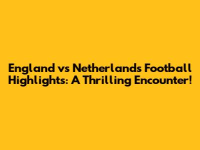 England Vs Netherlands Football Highlights