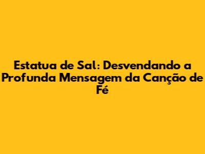 A "Estatua de Sal" nos ensina a importância de manter a fé em momentos de crise. Quando enfrentamos dificuldades, é fácil sentir medo, dúvida e desespero. A música nos lembra que, nesses momentos, precisamos confiar em Deus, acreditar em sua presença e olhar para frente, com a certeza de que ele está nos guiando. A música nos incentiva a superar os desafios, a aprender com as experiências e a crescer em nossa fé. A história da mulher de Ló nos mostra o perigo de duvidar e de desviar do caminho. A música nos lembra da importância de permanecer fiéis e de seguir os ensinamentos de Deus. Ao aplicarmos essa mensagem em nossa vida diária, podemos encontrar força para superar os desafios, paz em meio às dificuldades e esperança para o futuro.