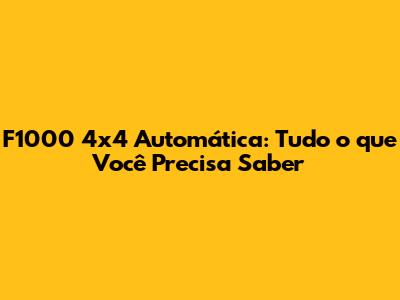 F1000 4x4 Automática: Guia Completo E Dicas
