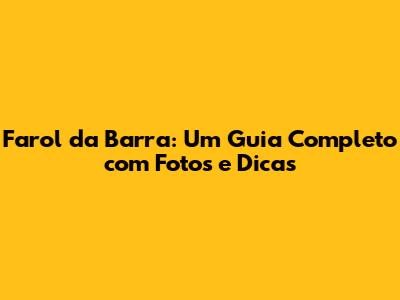 O Farol da Barra, localizado em Salvador, Bahia, é um dos pontos turísticos mais emblemáticos do Brasil. Sua beleza e importância histórica atraem visitantes de todo o mundo. Este guia completo oferece informações essenciais, desde a imagem do Farol da Barra até dicas de como aproveitar ao máximo sua visita.