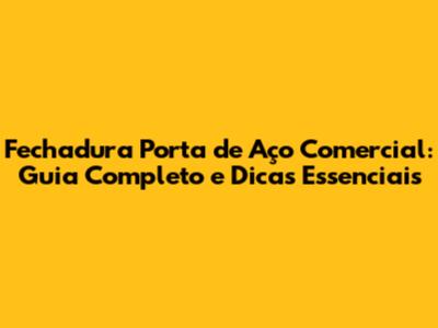 Fechadura Porta De Aço Comercial: Guia Completo E Dicas Essenciais