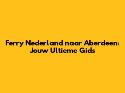Ferry Nederland Naar Aberdeen: Jouw Ultieme Gids