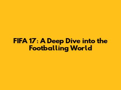 Hey guys! Let's dive into the world of FIFA 17, a game that holds a special place in the hearts of many football (soccer) fans. Released in 2016, this installment of the renowned FIFA series brought some exciting changes and improvements to the table. We're going to break down everything from the gameplay mechanics and new features to the overall impact it had on the gaming community. Get ready to reminisce about those thrilling virtual matches and the countless hours spent perfecting your skills on the pitch! FIFA 17 wasn't just another yearly update; it marked a significant step forward in the series, introducing fresh elements that aimed to enhance the player experience and immerse fans deeper into the beautiful game. So, let's lace up our virtual boots and get started on this journey through the world of FIFA 17.
