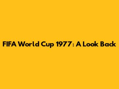 FIFA World Cup 1977: A Look Back