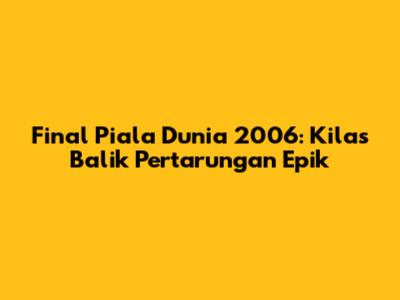 Final Piala Dunia 2006 adalah pertandingan yang luar biasa yang akan selalu dikenang dalam sejarah sepak bola. Pertandingan ini sarat dengan drama, emosi, dan momen-momen tak terlupakan yang akan terus dikenang oleh para penggemar sepak bola di seluruh dunia. Kemenangan Italia menjadi bukti bahwa semangat juang, kerja keras, dan disiplin dapat membawa sebuah tim meraih kesuksesan tertinggi. Pertandingan ini juga menjadi pelajaran berharga tentang sportivitas, fair play, dan pentingnya menjaga emosi dalam pertandingan. Melalui pertandingan ini, kita belajar bahwa sepak bola bukan hanya tentang kemenangan dan kekalahan, tetapi juga tentang bagaimana kita menghargai nilai-nilai luhur dalam olahraga. Pertandingan ini akan terus menjadi inspirasi bagi generasi pemain sepak bola di seluruh dunia. Pertandingan yang luar biasa ini membuktikan bahwa sepak bola adalah olahraga yang penuh dengan kejutan, drama, dan momen-momen yang tak terlupakan.