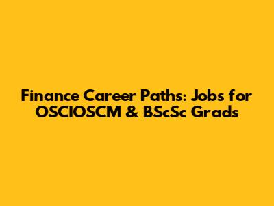 Finance Career Paths: Jobs For OSCIOSCM & BScSc Grads