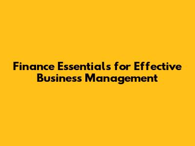 Finance Essentials For Effective Business Management