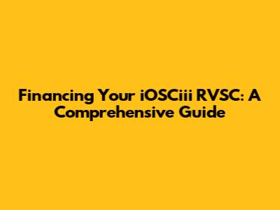 Financing Your IOSCiii RVSC: A Comprehensive Guide