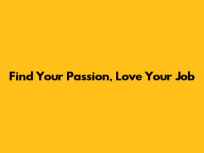 Find Your Passion, Love Your Job