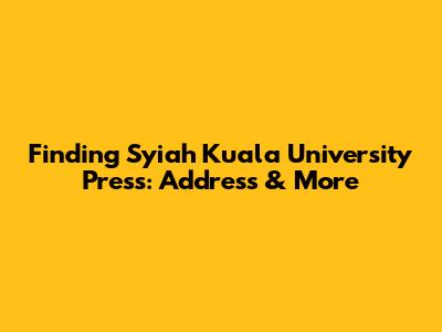 Finding Syiah Kuala University Press: Address & More