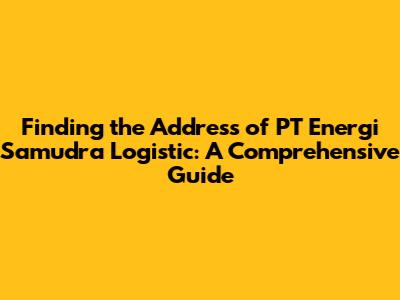 Finding The Address Of PT Energi Samudra Logistic: A Comprehensive Guide