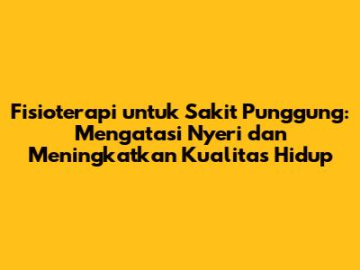 Sakit punggung adalah keluhan umum yang dialami banyak orang di seluruh dunia. Mulai dari nyeri ringan yang mengganggu hingga nyeri hebat yang melumpuhkan, sakit punggung dapat memengaruhi kualitas hidup seseorang secara signifikan. Untungnya, ada berbagai cara untuk mengatasi masalah ini, salah satunya adalah melalui fisioterapi. Fisioterapi menawarkan solusi yang komprehensif dan efektif untuk mengurangi nyeri, memulihkan fungsi, dan mencegah kekambuhan sakit punggung. Mari kita bahas lebih dalam tentang bagaimana fisioterapi dapat membantu Anda mengatasi sakit punggung dan kembali menjalani hidup yang aktif dan produktif.