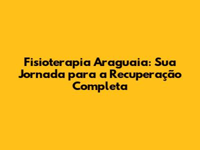 Fisioterapia Araguaia: Sua Jornada Para A Recuperação