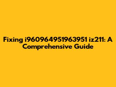 Fixing I960964951963951 Iz211: A Comprehensive Guide