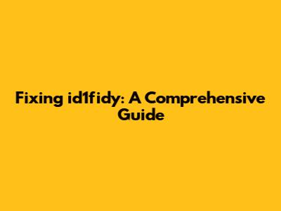 Fixing Id1fidy: A Comprehensive Guide