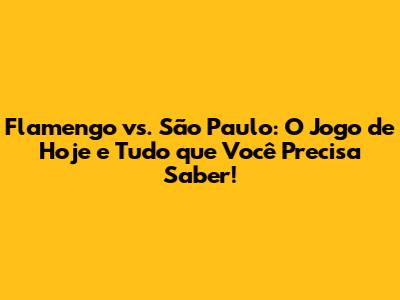 Flamengo Vs. São Paulo: O Jogo De Hoje E Tudo Que Você Precisa Saber!