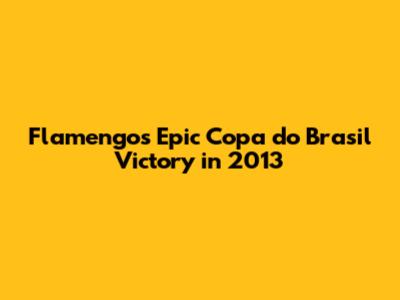 Hey guys! Let's dive into a truly unforgettable moment in Flamengo's history: their triumphant run and ultimate victory in the 2013 Copa do Brasil! This wasn't just any win; it was a rollercoaster of emotions, showcasing the heart, grit, and unwavering spirit of the Rubro-Negro. Get ready to relive the magic, the drama, and the sheer joy of Flamengo's journey to the top. From nail-biting matches to stunning goals, we'll explore every exciting aspect of this incredible achievement. So, grab your snacks, get comfortable, and let's journey back to 2013, a year that will forever be etched in the memories of Flamengo fans.
