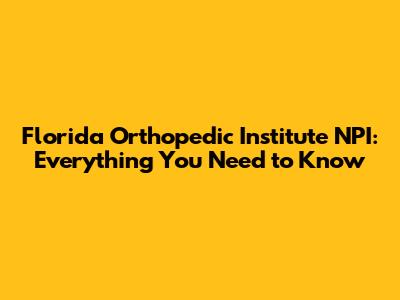Florida Orthopedic Institute NPI: Everything You Need To Know