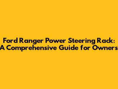 Ford Ranger Power Steering Rack: A Comprehensive Guide for Owners