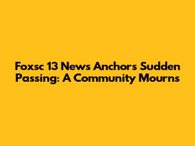 Foxsc 13 News Anchor's Sudden Passing: A Community Mourns