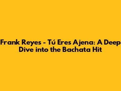Hey music lovers! Today, we're diving deep into a classic bachata track that has captured the hearts of many: "Tú Eres Ajena" by the one and only Frank Reyes. This song isn't just a tune; it's an emotional journey wrapped in the rhythms of the Dominican Republic. Whether you're a long-time bachata fan or just discovering this genre, this article will give you a comprehensive look at what makes "Tú Eres Ajena" so special. Let's get started, guys!