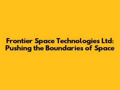 Frontier Space Technologies Ltd: Pushing The Boundaries Of Space