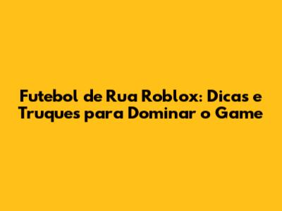 Futebol De Rua Roblox: Dicas E Truques Para Dominar O Game