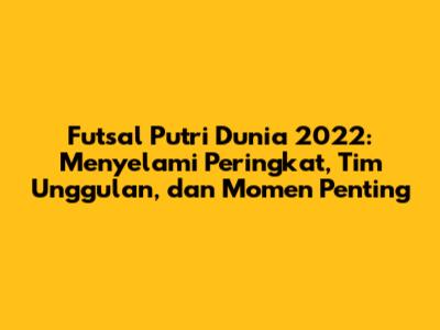 Futsal putri dunia 2022 menjadi sorotan utama dalam dunia olahraga, menampilkan persaingan ketat dan peningkatan kualitas permainan. Tahun ini, kita melihat perkembangan signifikan dalam ranking futsal putri, dengan tim-tim dari berbagai belahan dunia menunjukkan kemampuan terbaik mereka. Artikel ini akan membahas secara mendalam mengenai ranking futsal putri dunia 2022, menganalisis tim-tim terbaik, dan menyoroti momen-momen penting yang terjadi sepanjang tahun.