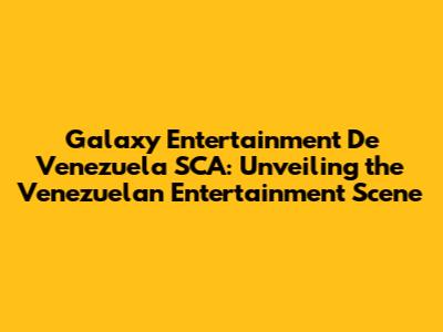 Hey everyone! Today, we're diving deep into the world of Galaxy Entertainment De Venezuela SCA. This is a big deal in the Venezuelan entertainment scene, so buckle up, because we're about to explore everything you need to know. We'll be looking at what Galaxy Entertainment is all about, the kinds of projects they're involved in, and what makes them such a key player. Venezuela's entertainment landscape is vibrant and ever-evolving. This company is a significant contributor to that. Understanding Galaxy Entertainment de Venezuela is essential for anyone interested in the country's cultural and economic activities. Ready to get started? Let’s jump right in, shall we?