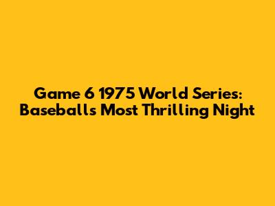 Game 6 1975 World Series: Baseball's Most Thrilling Night