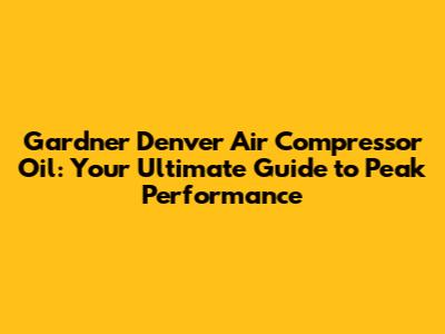 Gardner Denver Air Compressor Oil: Your Ultimate Guide