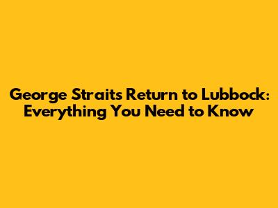 George Strait's Return to Lubbock: Everything You Need to Know