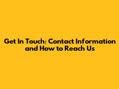 Get In Touch: Contact Information And How To Reach Us