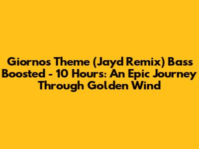 What's up, fellow anime and music lovers! Today, we're diving deep into something truly epic: the Giorno's Theme (Jayd Remix) Bass Boosted - 10 Hours. Yeah, you heard that right. Ten glorious hours of that iconic JoJo's Bizarre Adventure: Golden Wind soundtrack, remixed and amplified to perfection by Jayd. This isn't just background noise, guys; this is an experience. We're talking about a track that encapsulates the sheer audacity, the determination, and the style of Giorno Giovanna himself. Whether you're grinding through work, powering up your workout, or just need an endlessly epic soundtrack to your life, this remix is your new best friend. So, buckle up, because we're about to explore why this 10-hour bass-boosted masterpiece has taken the JoJo fandom by storm and why it's an absolute must-listen for anyone who appreciates good music and even better anime.
