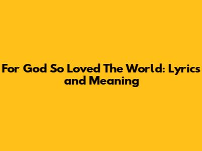 God So Loved The World: Lyrics And Meaning