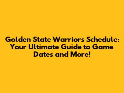 Golden State Warriors Schedule: Game Dates & More!