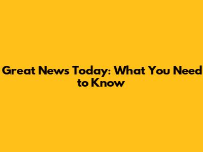 Great News Today: What You Need To Know