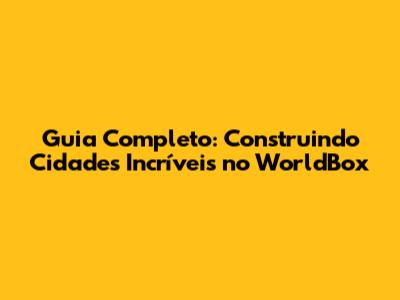 Guia Completo: Construindo Cidades Incríveis No WorldBox