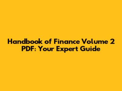 Handbook Of Finance Volume 2 PDF: Your Expert Guide