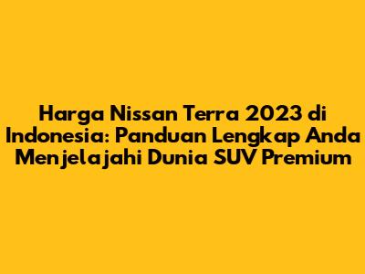 Hai, guys! Kalian sedang mencari informasi terkini dan terpercaya tentang harga Nissan Terra 2023 di Indonesia? Kalian datang ke tempat yang tepat! Nissan Terra, sebagai salah satu jagoan di segmen SUV Ladder Frame, memang selalu menarik perhatian, apalagi buat kalian yang butuh kendaraan tangguh, nyaman, dan berkapasitas besar untuk keluarga atau petualangan. Dengan desain yang gagah, performa mesin yang handal, serta fitur-fitur canggih yang ditawarkannya, tidak heran kalau Nissan Terra 2023 menjadi salah satu pilihan utama di pasar otomotif Indonesia. Artikel ini akan mengupas tuntas segala hal yang perlu kalian ketahui tentang SUV keren ini, mulai dari rincian harga, varian, fitur unggulan, hingga tips jitu sebelum kalian memutuskan untuk memboyongnya pulang. Jadi, siap-siap ya, karena kita akan menjelajahi setiap sudut informasi penting ini agar kalian bisa membuat keputusan terbaik!