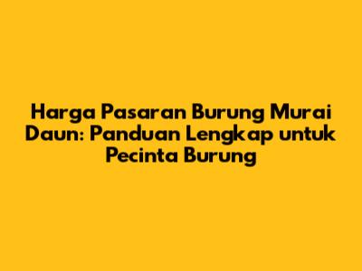 Guys, kalau kalian adalah penggemar burung kicau, pasti sudah tidak asing lagi dengan burung Murai Daun, kan? Burung ini memang punya pesona tersendiri dengan kicauannya yang merdu dan penampilannya yang memukau. Nah, kali ini kita akan membahas tuntas tentang harga pasaran burung Murai Daun. Kita akan bedah mulai dari harga terbaru, faktor yang memengaruhi harga, hingga tips memilih dan merawatnya. So, simak terus ya!