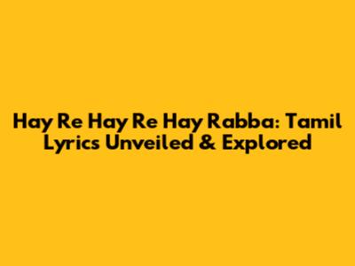 Hay Re Hay Re Hay Rabba: Tamil Lyrics Unveiled & Explored
