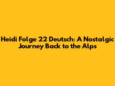While I can't give away specific spoilers without knowing exactly which version of Heidi Folge 22 Deutsch you're referring to (remember, there are a few different adaptations!), I can talk about some common themes and plot points that often appear around the 22nd episode mark in various Heidi series.