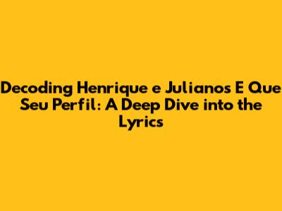 Hey guys! Ever found yourself humming a tune and wondering, "What's the real story behind these lyrics?" Today, we're diving deep into Henrique e Juliano's hit song, "E Que Seu Perfil." Get ready to uncover the emotions, the storytelling, and the hidden gems within this popular track. We'll break down the lyrics line by line, explore the themes, and maybe even find a piece of our own experiences reflected in the music. So, let's get started and explore what makes this song so captivating!