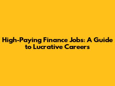 High-Paying Finance Jobs: A Guide To Lucrative Careers