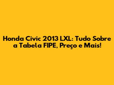Honda Civic 2013 LXL: Tabela FIPE, Preço E Dicas
