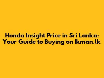 Hey guys! Are you looking for a fuel-efficient and stylish ride in Sri Lanka? Well, the Honda Insight might just be your perfect match! But before you jump onto Ikman.lk to snag one, let's break down everything you need to know about the Honda Insight's price, what to look for, and how to make a smart buy. Think of this as your ultimate guide to navigating the world of Honda Insights on Ikman.lk. We'll cover everything from understanding the different generations to spotting a good deal, so you can drive away happy. So, buckle up, and let's dive in!