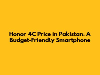 Honor 4C Price In Pakistan: Budget-Friendly Smartphone