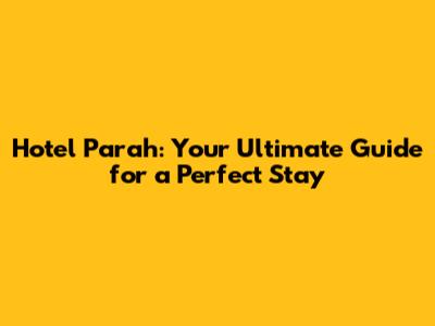 Hotel Parah: Your Ultimate Guide For A Perfect Stay