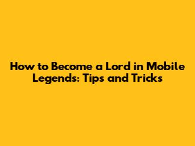 How To Become A Lord In Mobile Legends: Tips And Tricks